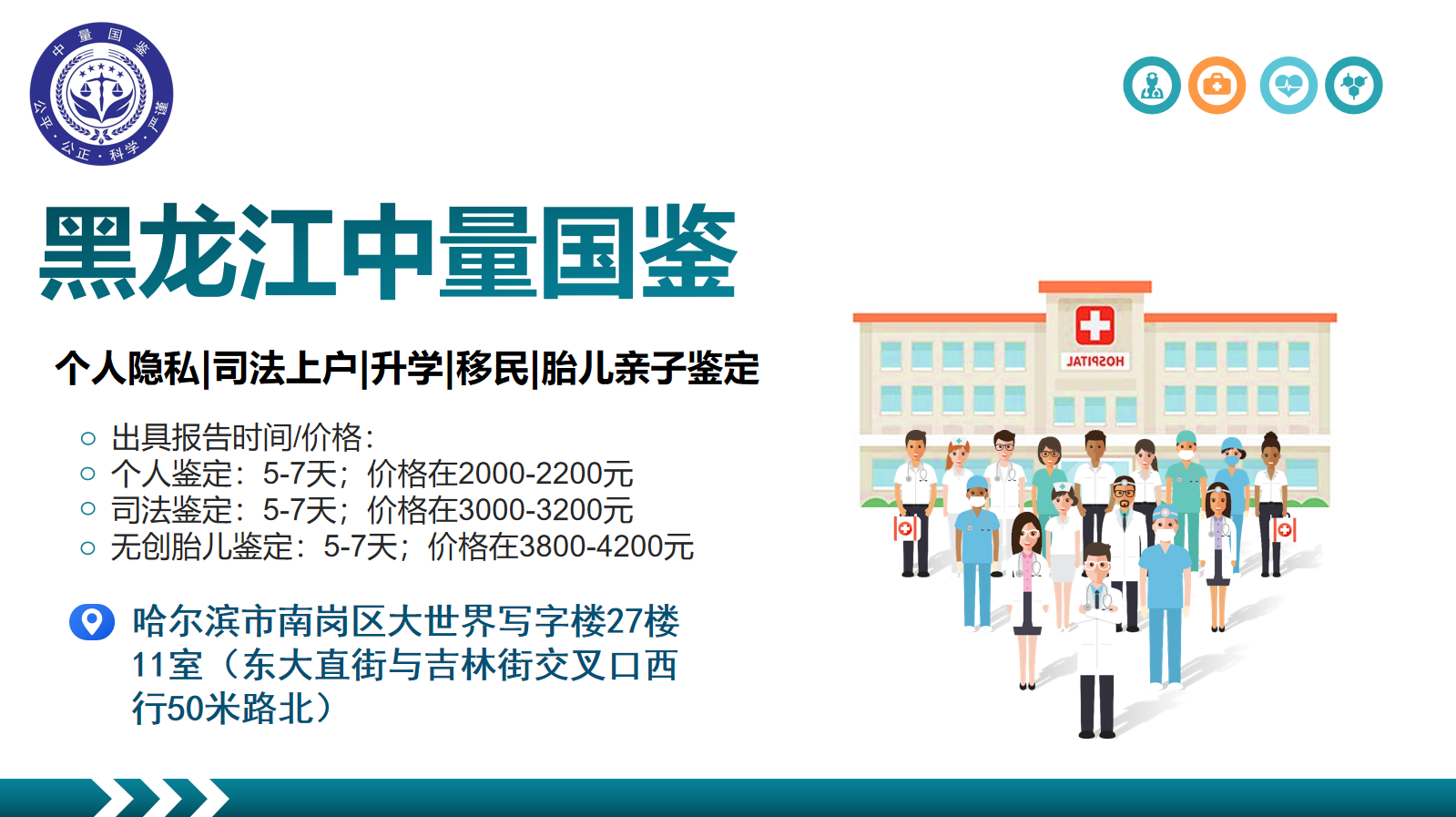黑龙江亲子鉴定中心地址的选择需兼顾专业性与隐私性。国权基因凭借多年行业经验,为哈尔滨及全省用户提供一站式解决方案。无论是隐私鉴定、司法鉴定还是孕期鉴定,均能满足多样化需求。如需进一步了解检测流程或预约服务,可关注公众号“哈尔滨中量国鉴”获取实时咨询,或在评论区留言提问,我们将第一时间为您解答!